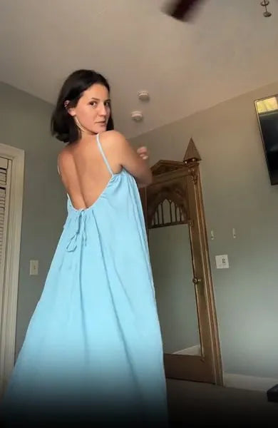 Answer 3: This is a sleeveless, maxi-length tank dress designed with spaghetti straps and a mid-rise waist. It features a loose, backless fit and elegant pleated details suitable for street fashion.